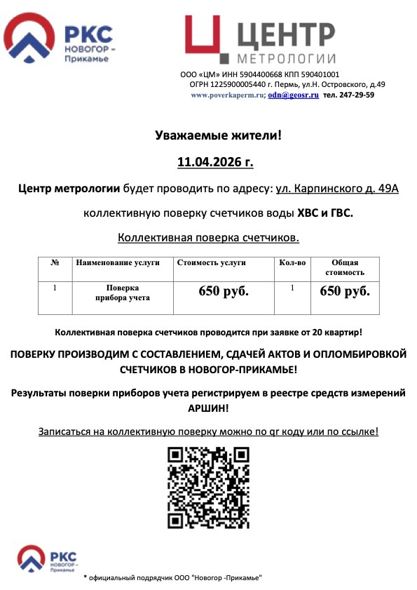 Пожалуйста, ознакомьтесь с информацией о поверке счётчиков ХВС и ГВС 11.04.2026. Ссылка для записи: https://forms.yandex.ru/u/69ba4fbb493639533cf36ae5